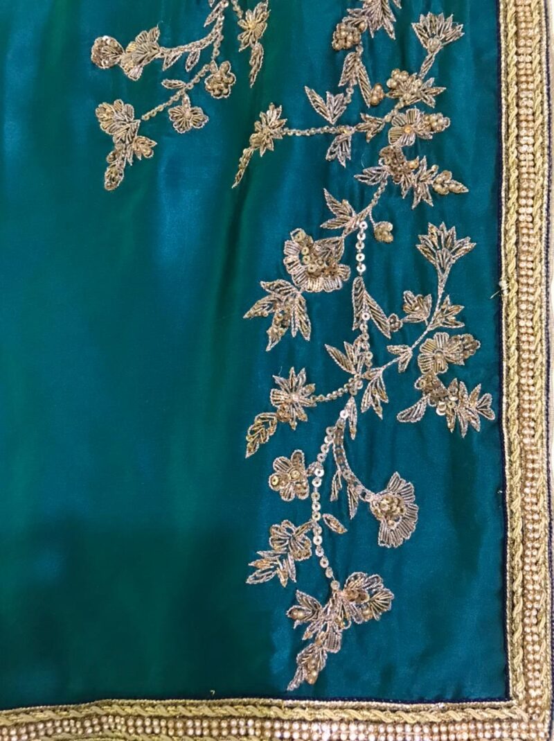 Fabric : Plain Silk Trouser with Dori and Sitara Moti work heavy duppata (Lace on the corners) , Sitara work on full shirt and Moti work on end sleeves and neck line.