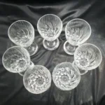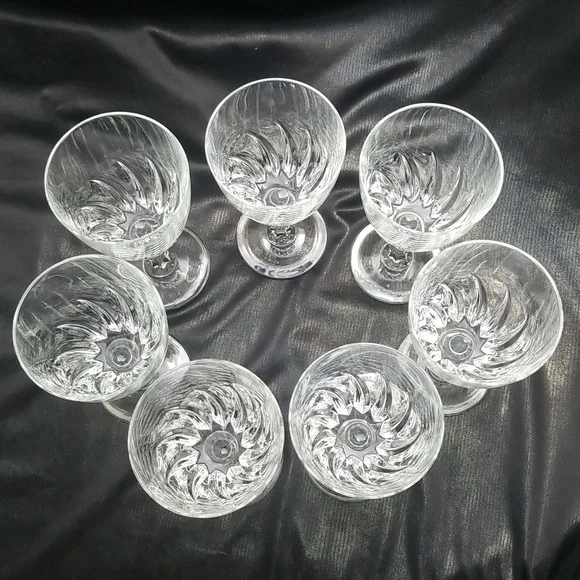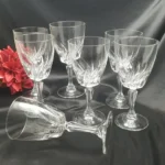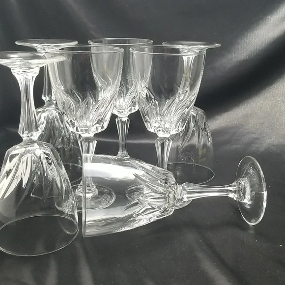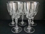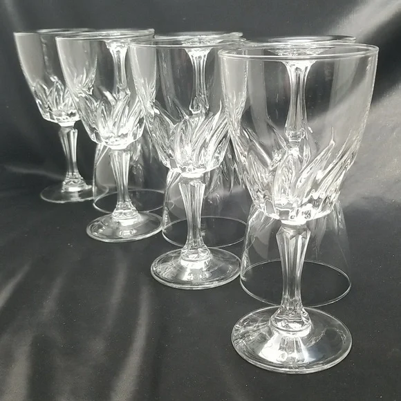 Set of 6 Wine Glasses, Vintage Wine Glasses | pattern water goblet glasses. Beautiful crystal with flame pattern and multi sided stem. 6 ⅞” tall with a 3 ⅛” diameter.